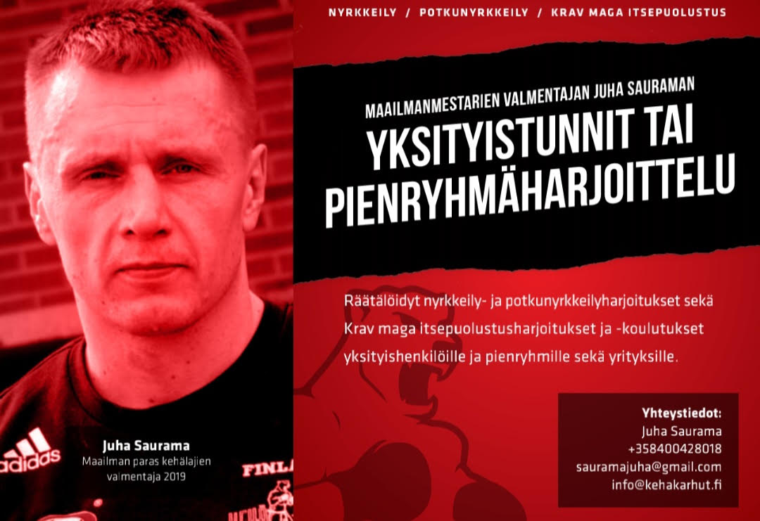 Haluatko oppia nopeasti uuden kamppailulajin? haluatko päästä ystäväsi kanssa nopeasti hyvään kuntoon? Järjestän yksilöllisiä valmennuksia niin yksityishenkilöille kuin pienryhmille.